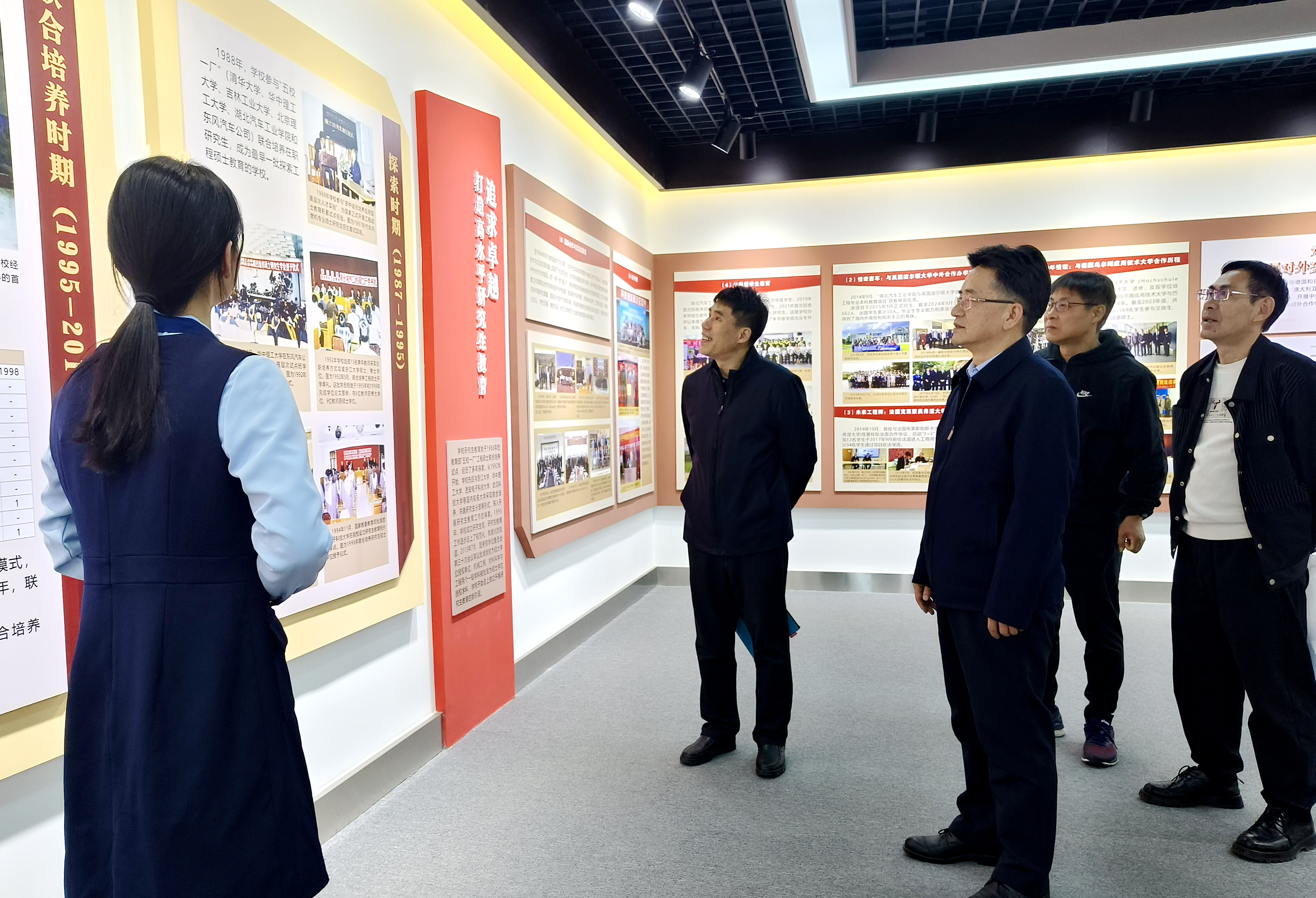 调研伊始,在张文学书记的陪同下,余伟馆长一行步入校史馆。参观过程中,张文学详细介绍了学校的发展脉络,着重阐述了学校在三线建设时期作出的突出贡献,以及首任院长孟少农院士留存的珍贵档案资源。余伟对校史馆在传承汽院红色科学家精神方面取得的成果予以高度评价,认为这些实践对高校文化传承具有重要借鉴价值。